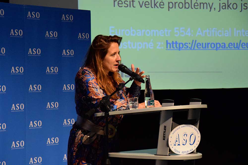 Závěr odborné části konference patřil prezentaci odborné studie „Sociální dialog v procesu adaptace na změny způsobené využíváním nových technologií a umělé inteligence v pracovním prostředí“, s níž vystoupili Soňa Veverková a Renáta Kyzlinková z Výzkumného institutu práce a sociálních věcí.